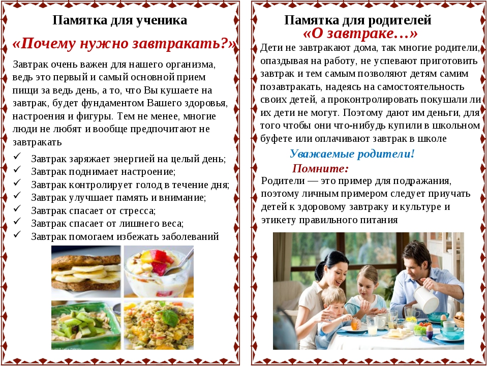 Памятка родителям о здоровом питании школьника