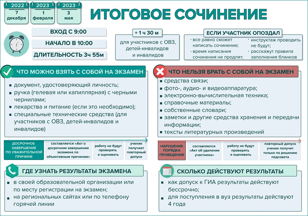 Расписание проведения итогового собеседования по русскому языку в 2022/23 учебном году