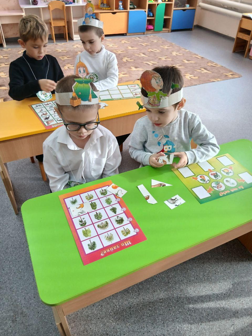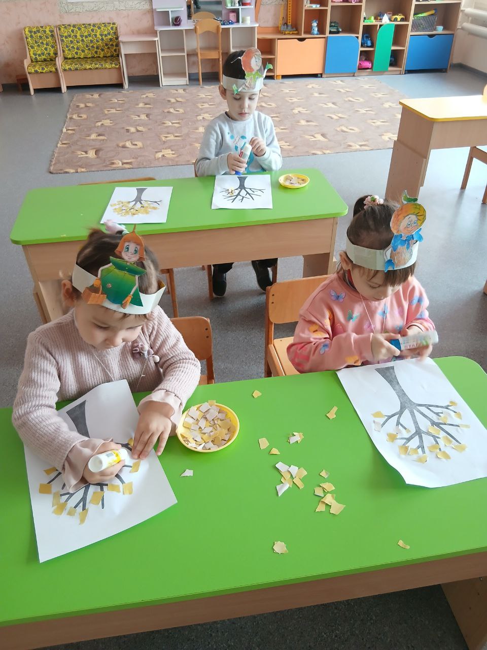 аппликацию «Золотые березы», провели дидактические игры, собирали пазлы.
